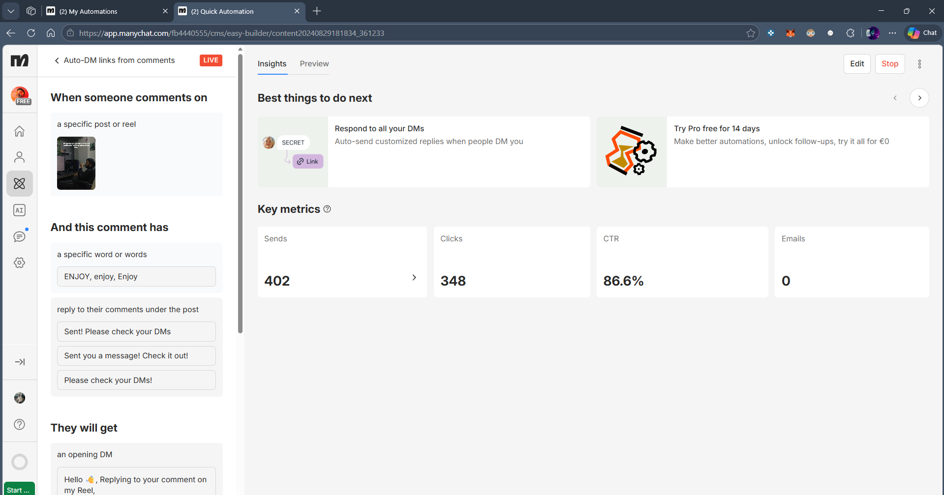 How I Used Manychat to Auto-Reply to Instagram Comments and Send DMs (Step-by-Step)