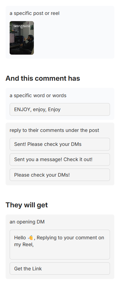 Now, whenever someone comments “ENJOY”, the automation fires.